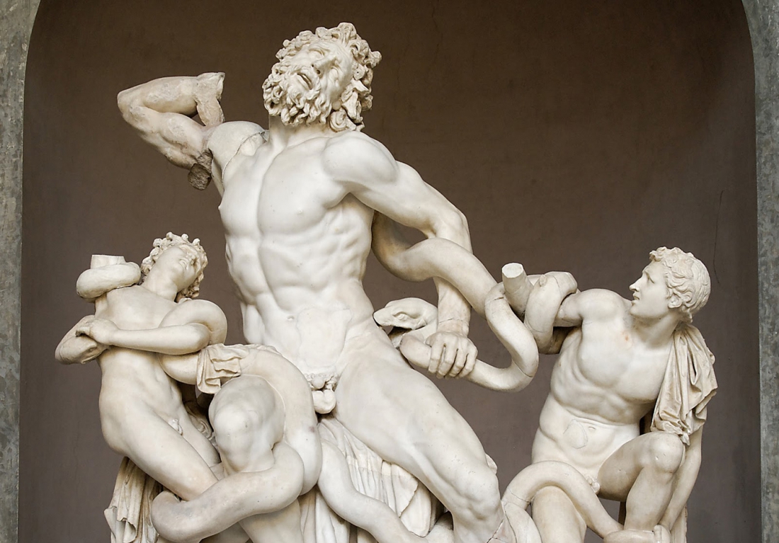 la foto: Il gruppo scultoreo del Laocoonte ed i suoi figli, noto anche semplicemente come Gruppo del Laocoonte, è una scultura in marmo del I secolo a.C. L'opera è stata realizzata dal lavoro sinergico degli scultori Agesandro, Atanodoro e Polidoro. La sua caratteristica peculiare è quello di essere un'opera a tutto tondo. Infatti il lavoro simultaneo allo stesso blocco di marmo dei tre artisti ha dato vita ad un'opera maestosa, da ammirare nella sua interezza fruendola a 360°, scoprendo come, con elegante equilibrio ed una visione pluridirezionale, siano valorizzate le numerose linee compositive. Un uomo da solo (con un campo visivo stimato poco più di 200°) non avrebbe mai potuto raggiungere un risultato simile.